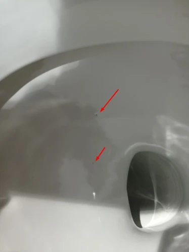 Точки на бачке и чаше, скол в отверстии.Причина уценки товара: