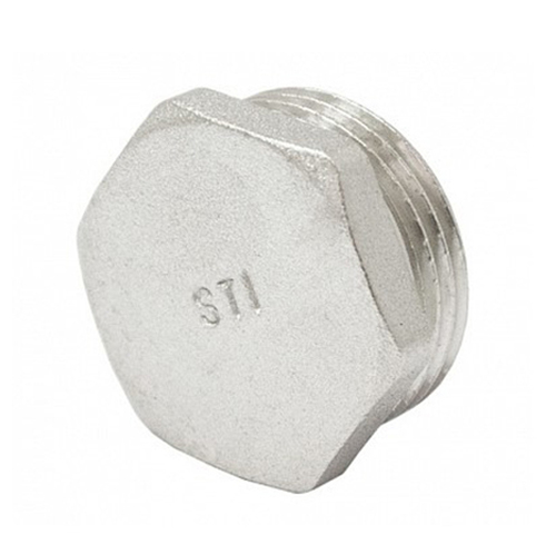Заглушка латунная никелированная с наружной резьбой Ду 15 (1/2") STI применяется для закрытия концевых отверстий труб в трубопроводах.